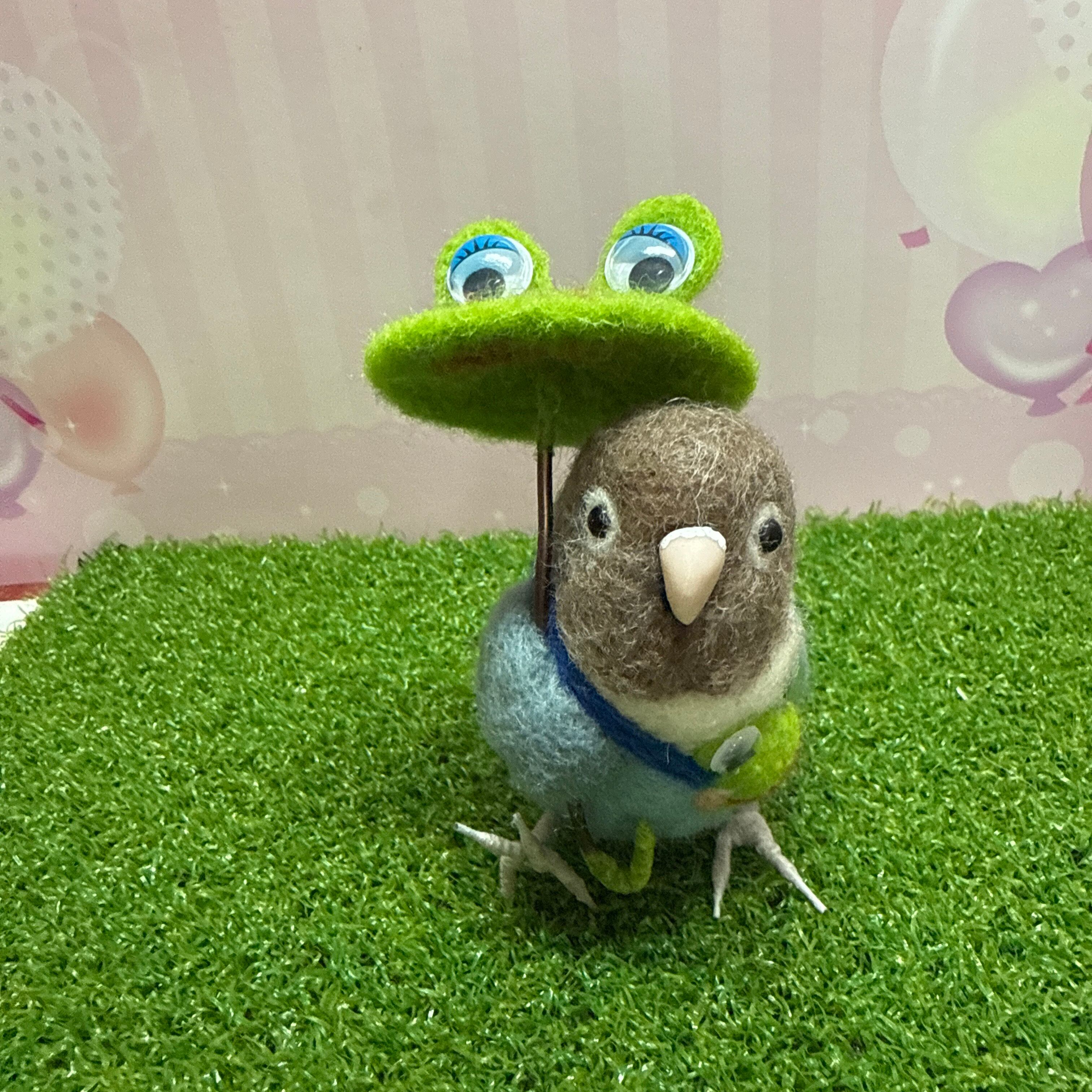 羊毛フェルト 傘でお出かけボタンインコ 鳥 ゆこりん工房