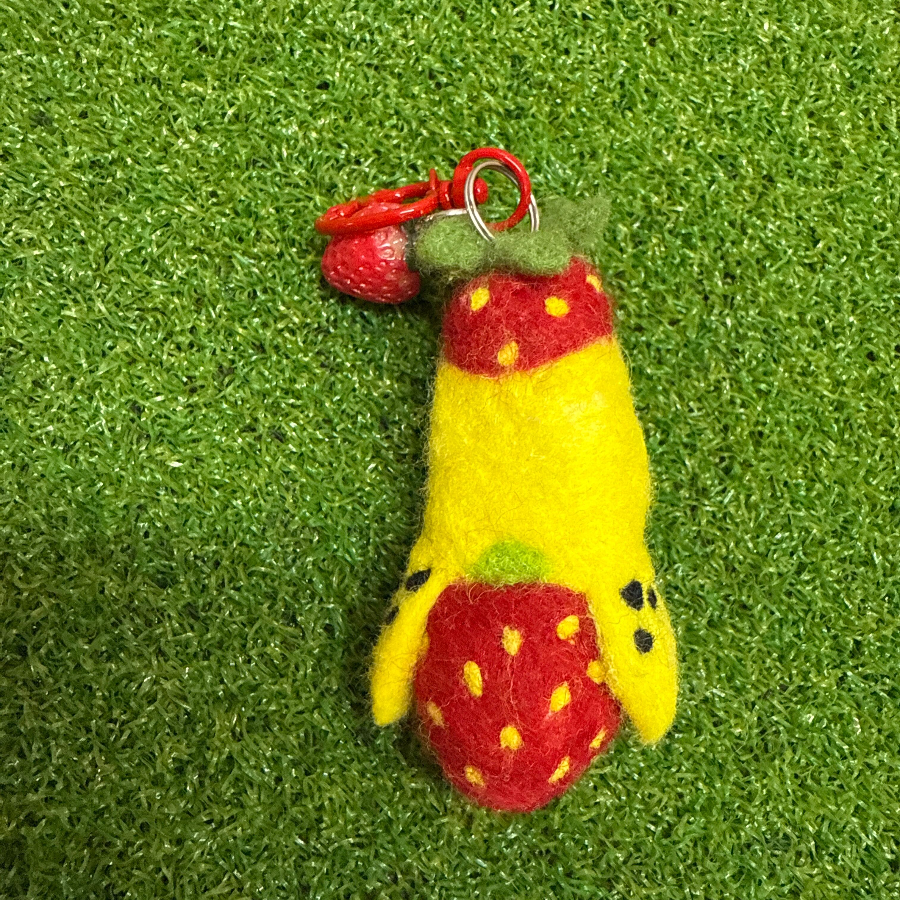 羊毛フェルト等で可愛い苺セキセイインコ苺キーホルダーを作製致しました(*^▽^*)♡