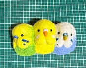 羊毛フェルト等で可愛い仲良しセキセイ3羽ブローチを作製いたしました^_^