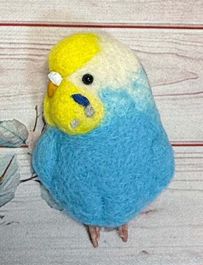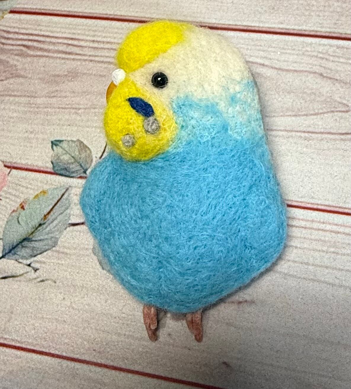 羊毛フェルト等で可愛いセキセイインコのブローチを作製致しました^_^