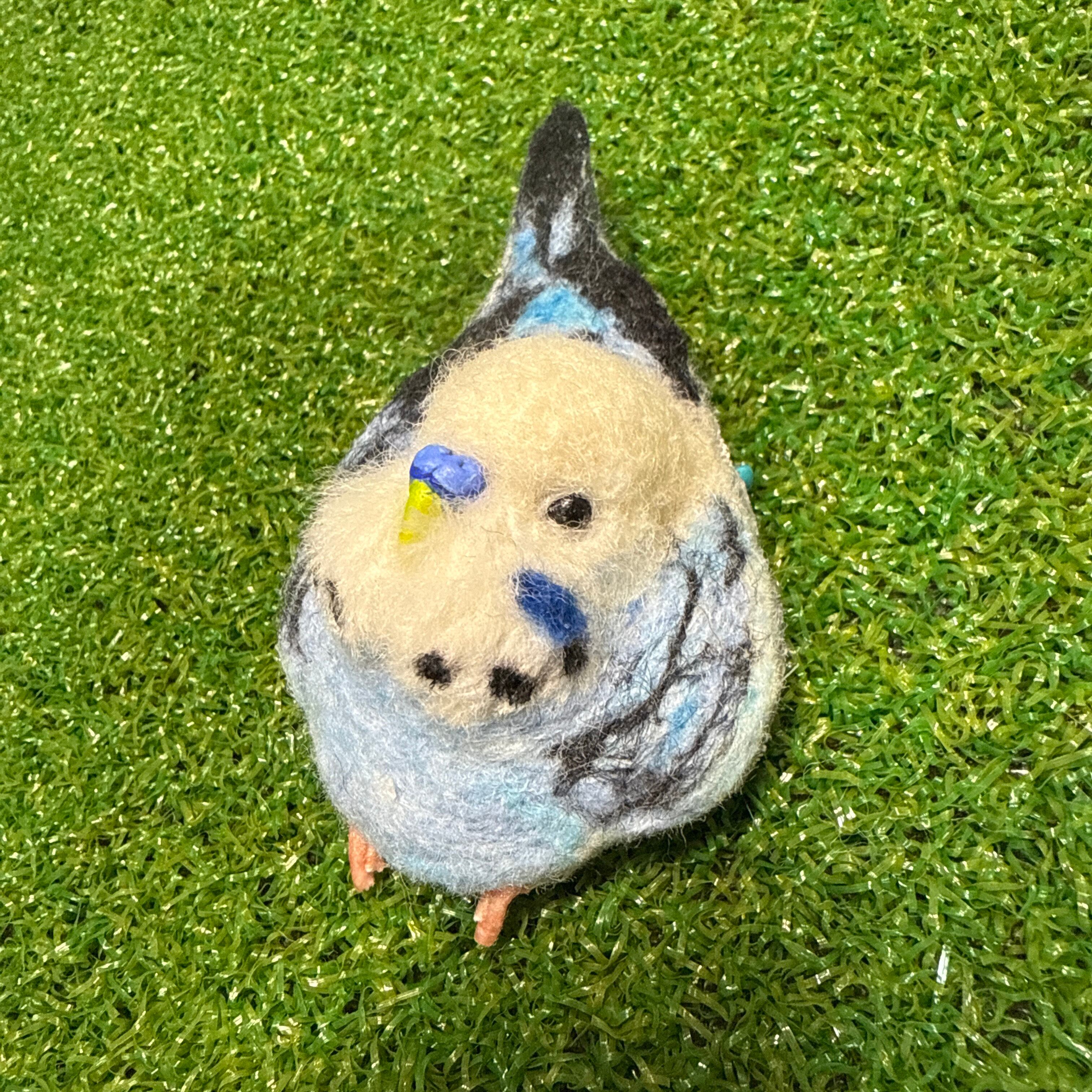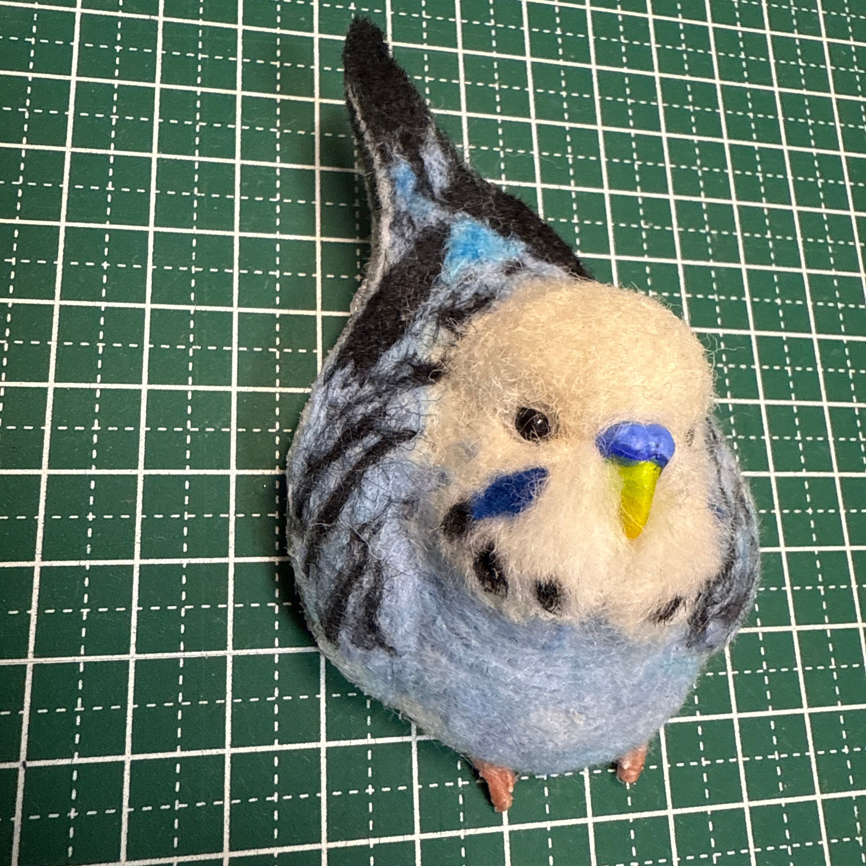 羊毛フェルト等で見上げポーズの可愛いセキセイインコブローチを作製致しました^_^