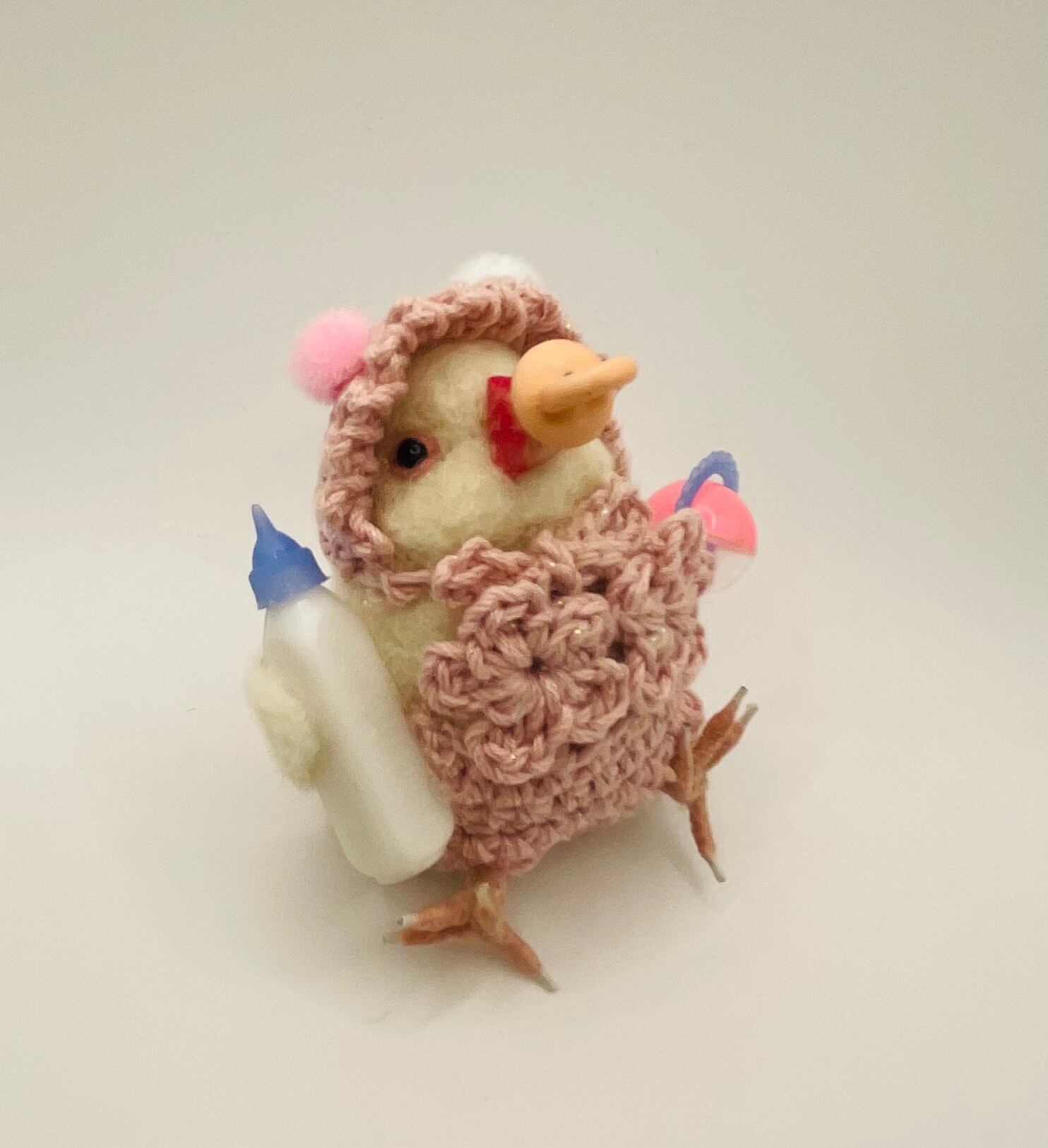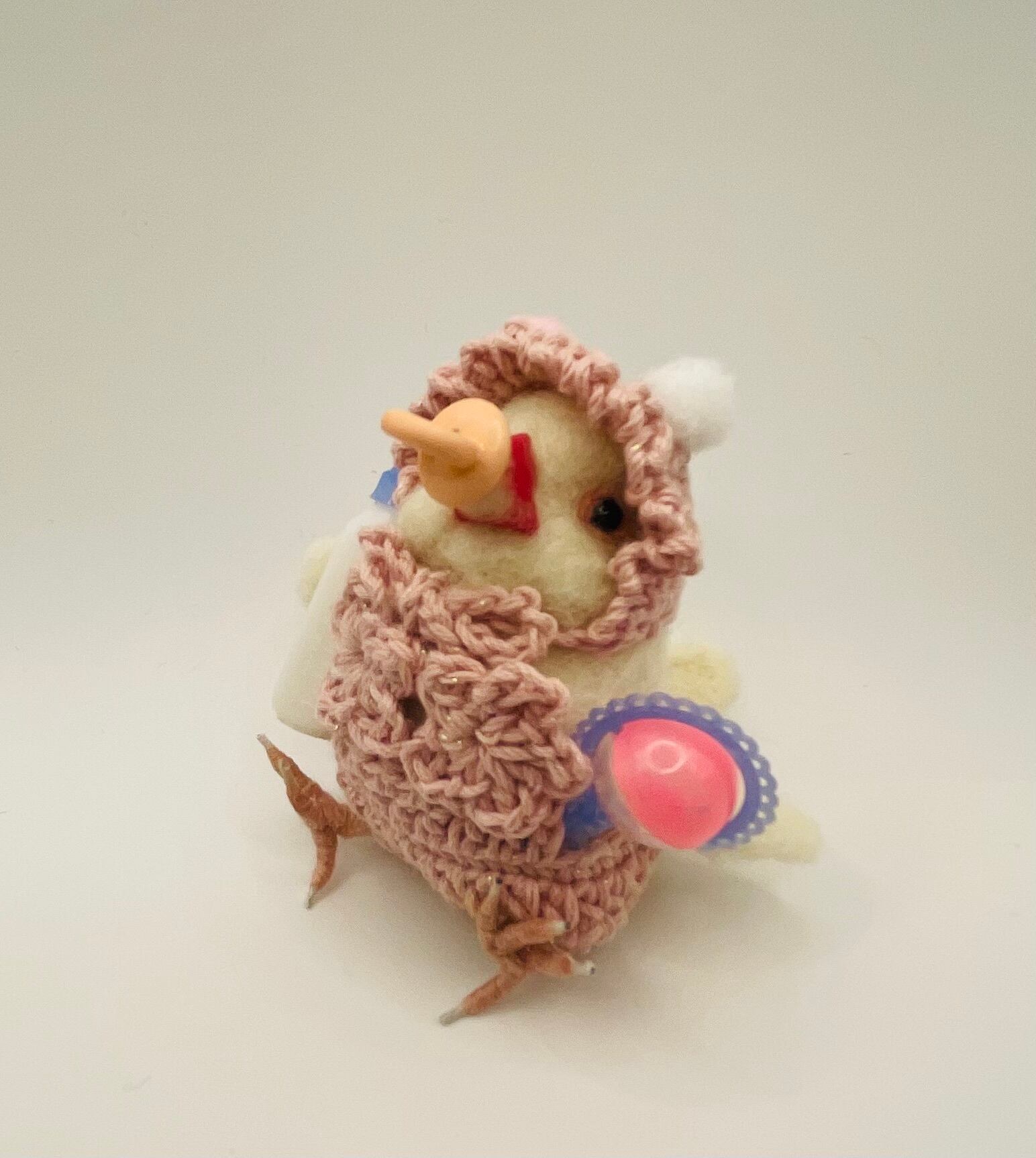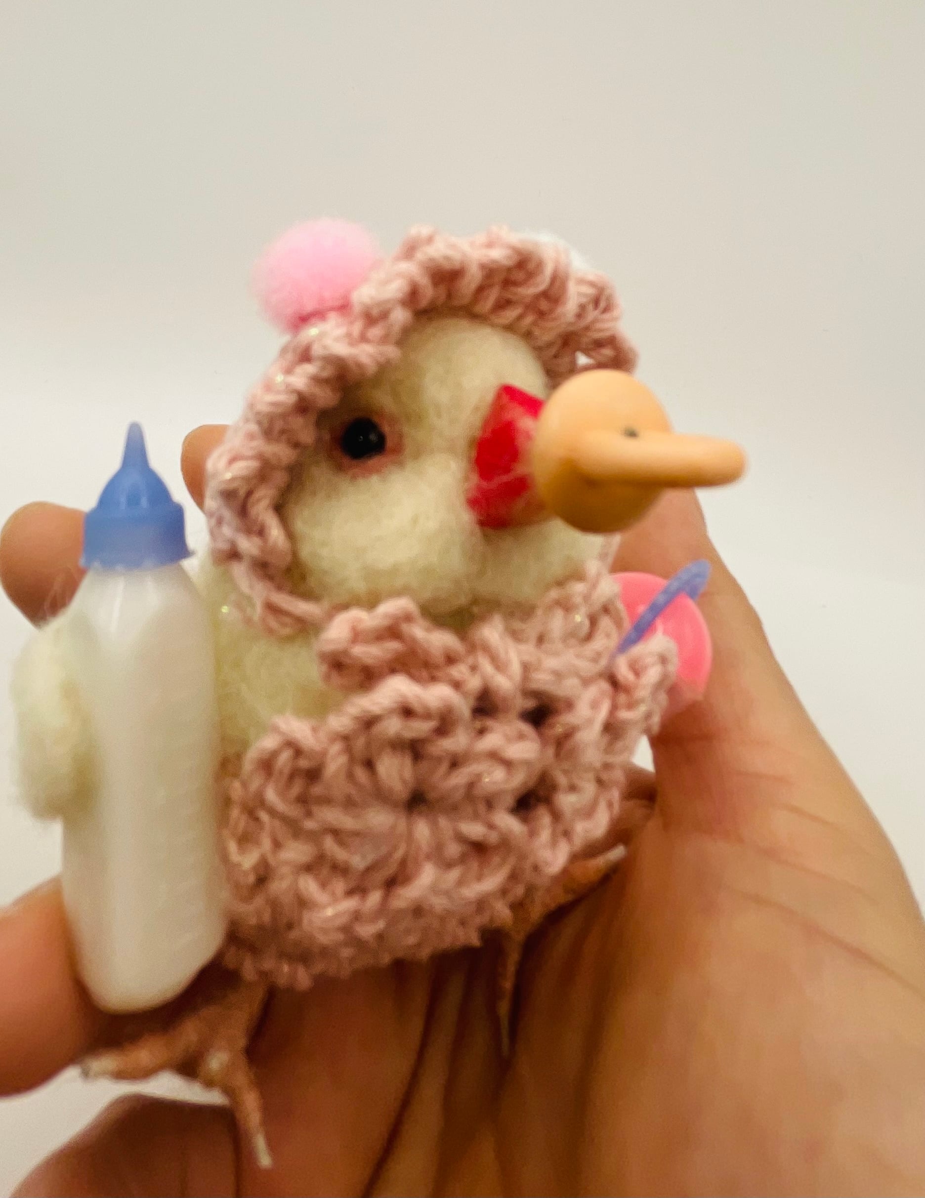 新作 羊毛フェルト 可愛いおしゃぶり文鳥雛 フィギュアを作製致しました^ - ^