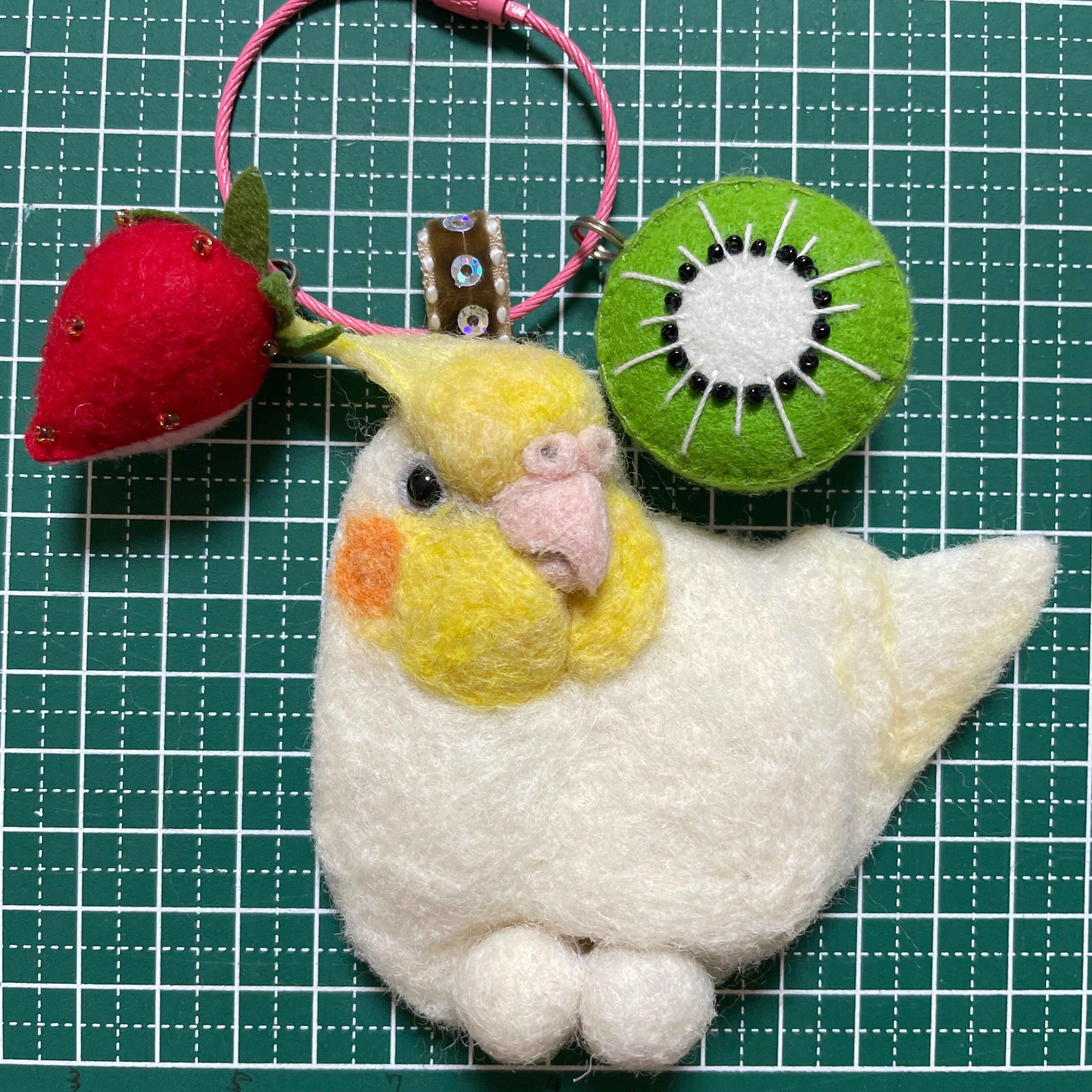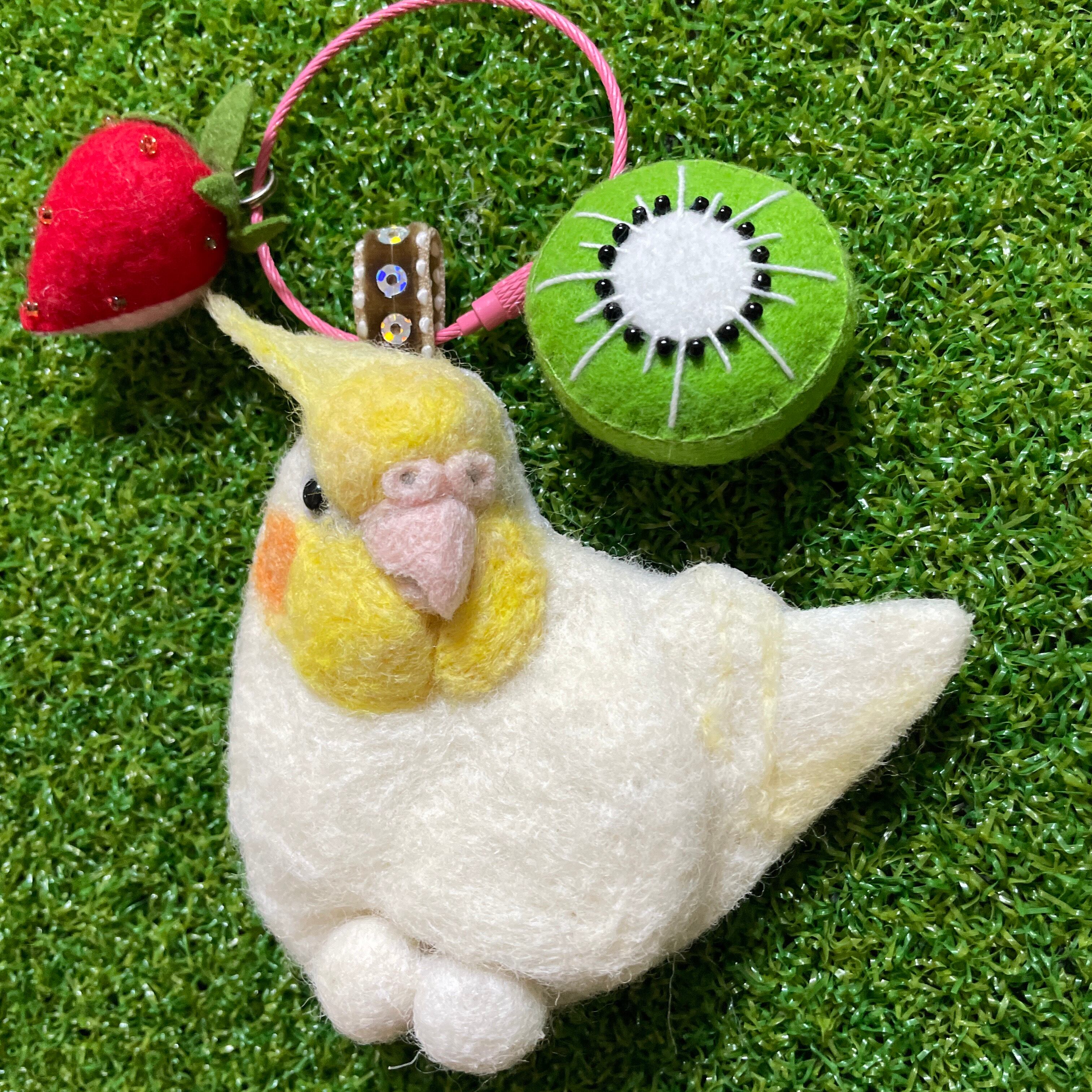 羊毛フェルト等で リアル可愛いオカメインコバッグチャームを作製致しました(๑˃̵ᴗ˂̵)