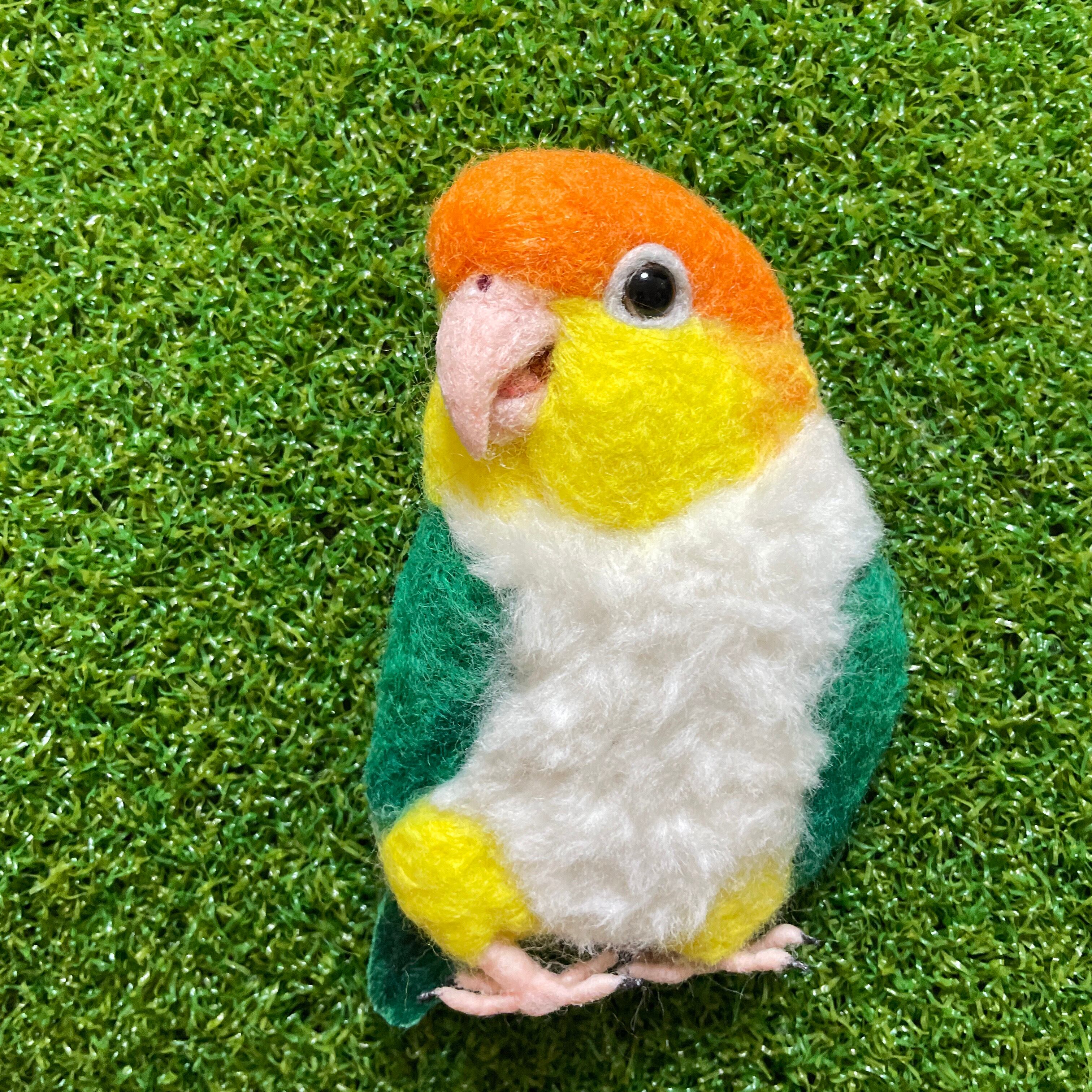 羊毛フェルト リアル可愛いシロハラインコ 鳥 ゆこりん工房