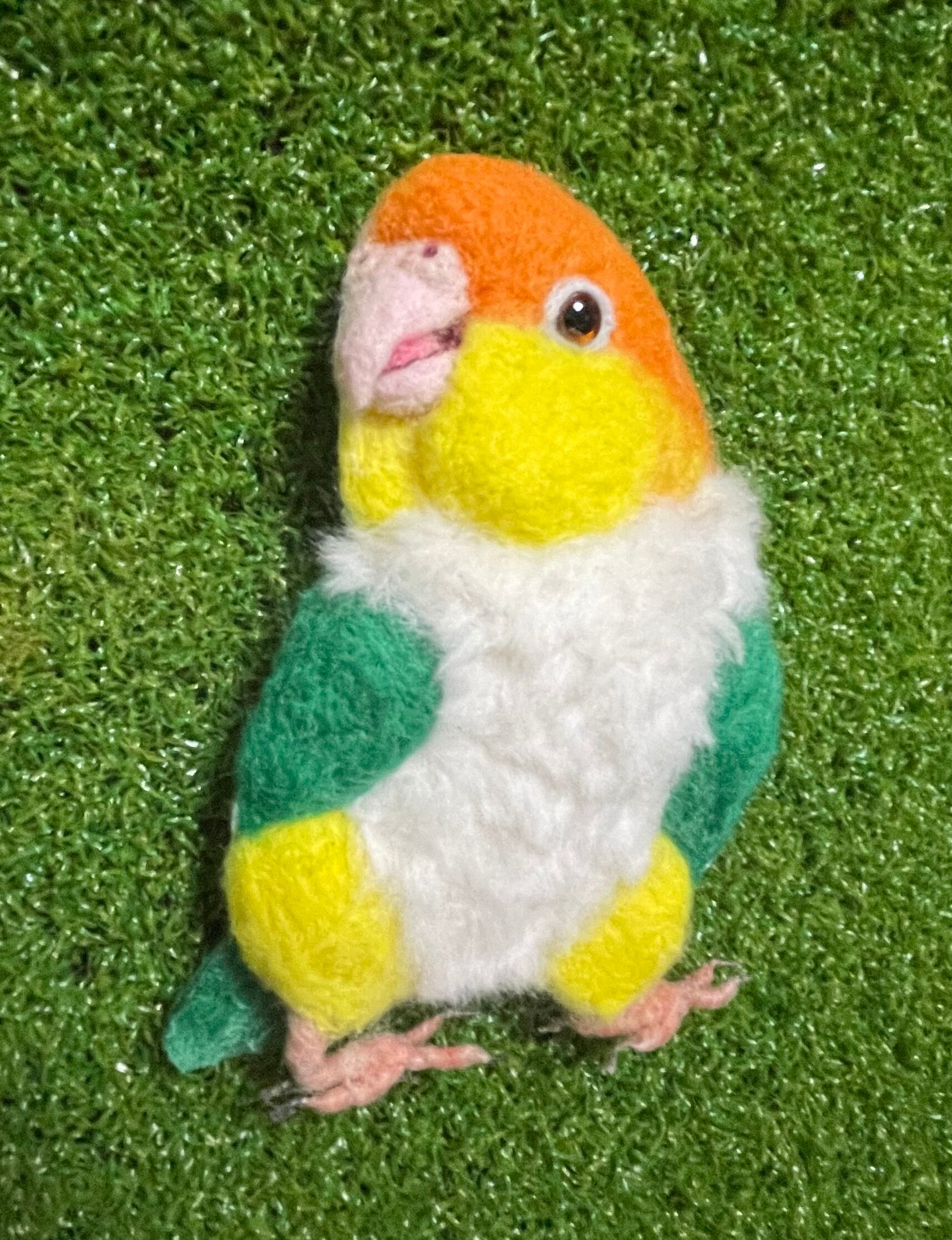 羊毛フェルト等でリアル可愛いシロハラインコブローチを作製致しました╰(*´︶`*)╯♡