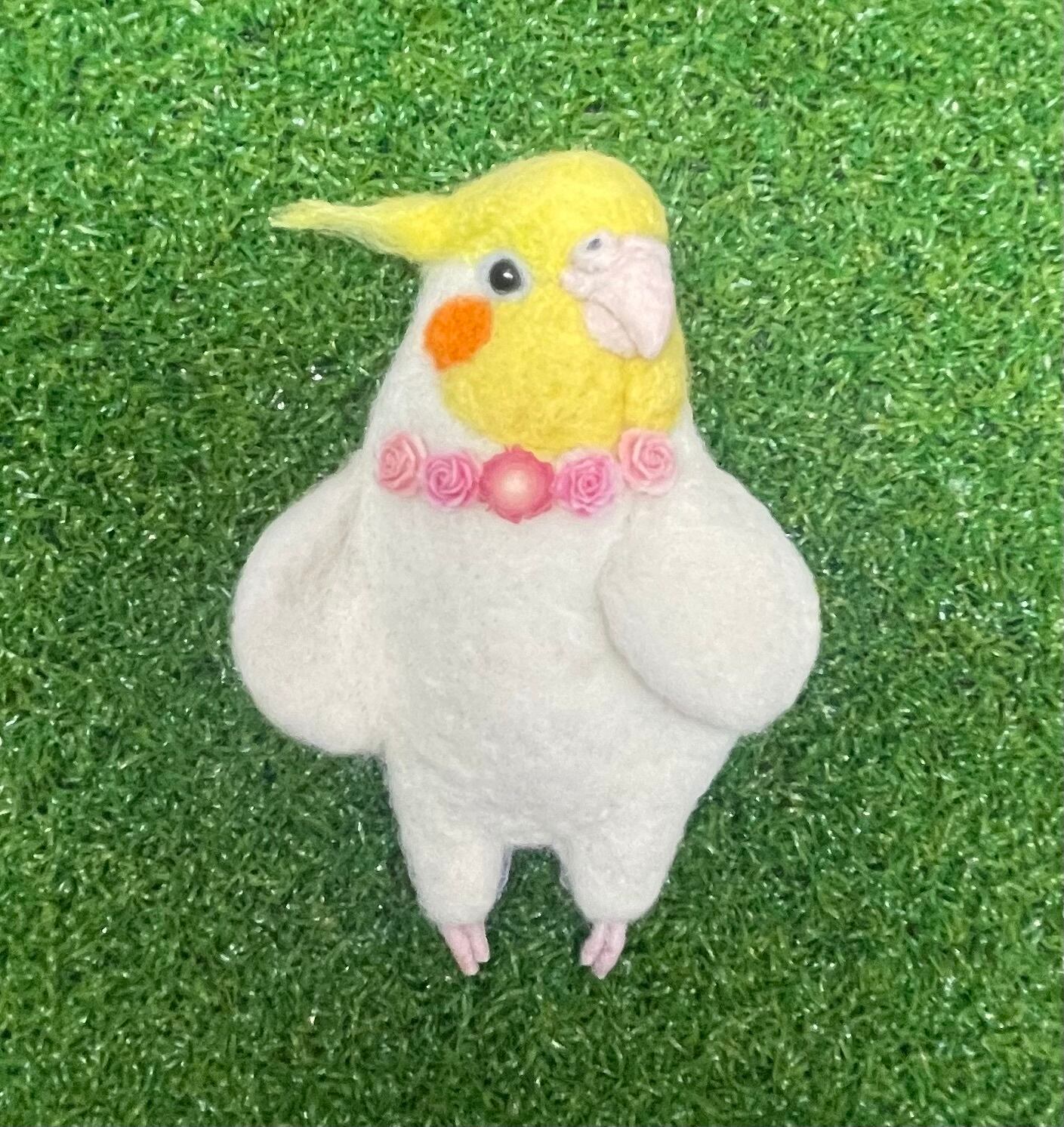羊毛フェルト等で リアル可愛いオカメインコブローチを作製致しました(๑˃̵ᴗ˂̵)