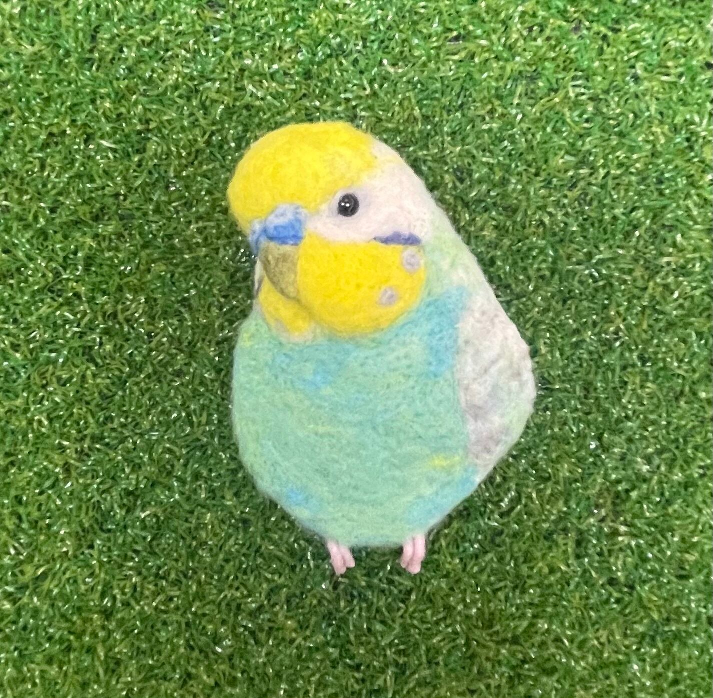羊毛フェルト リアル可愛いセキセイインコブローチ 鳥 ゆこりん工房 イエローフェイス