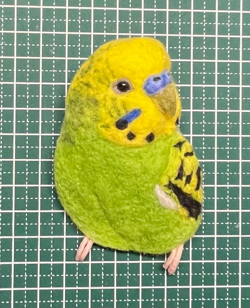 羊毛フェルト等で リアル可愛いセキセイインコブローチを作製致しました(๑˃̵ᴗ˂̵)