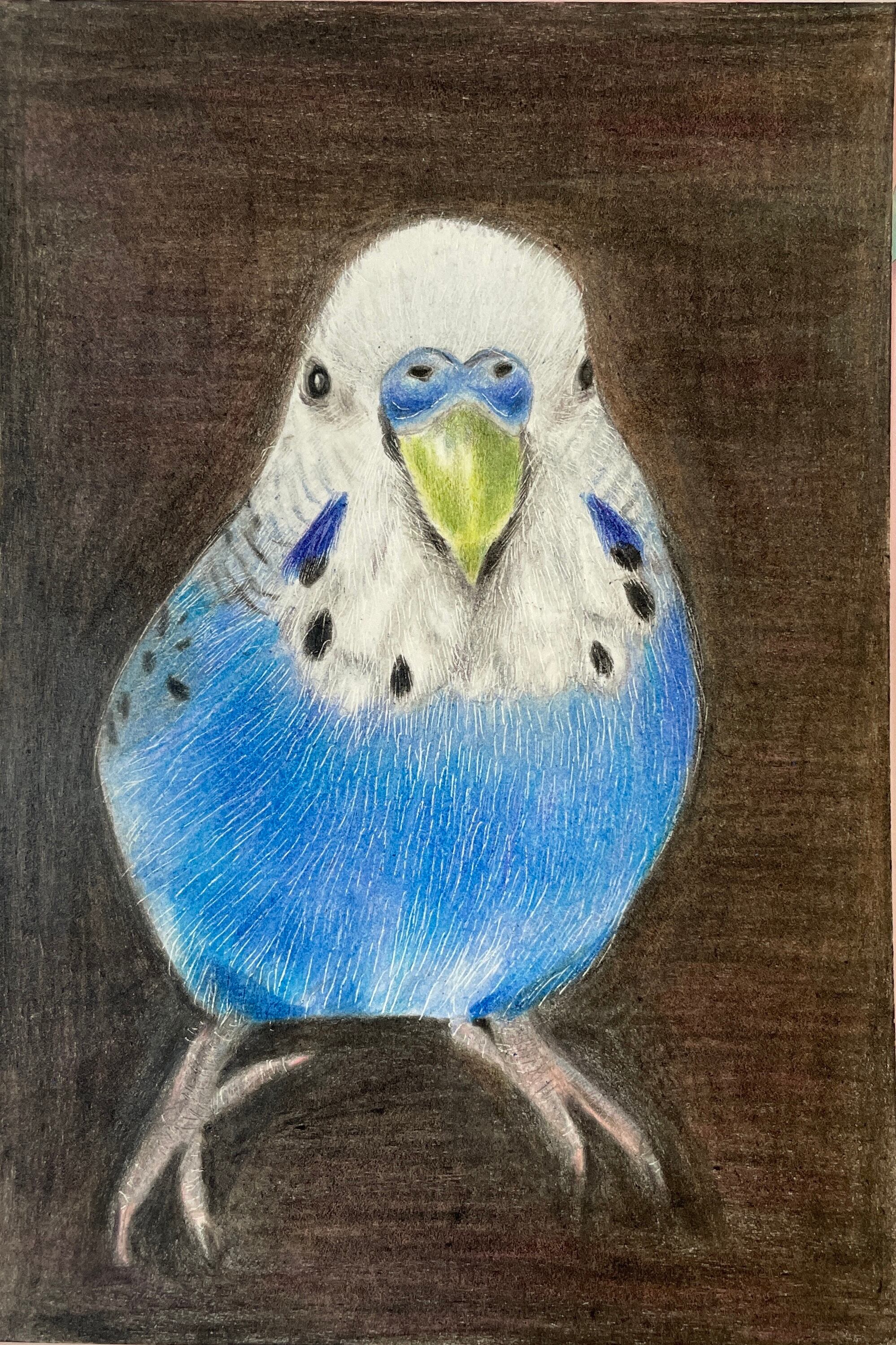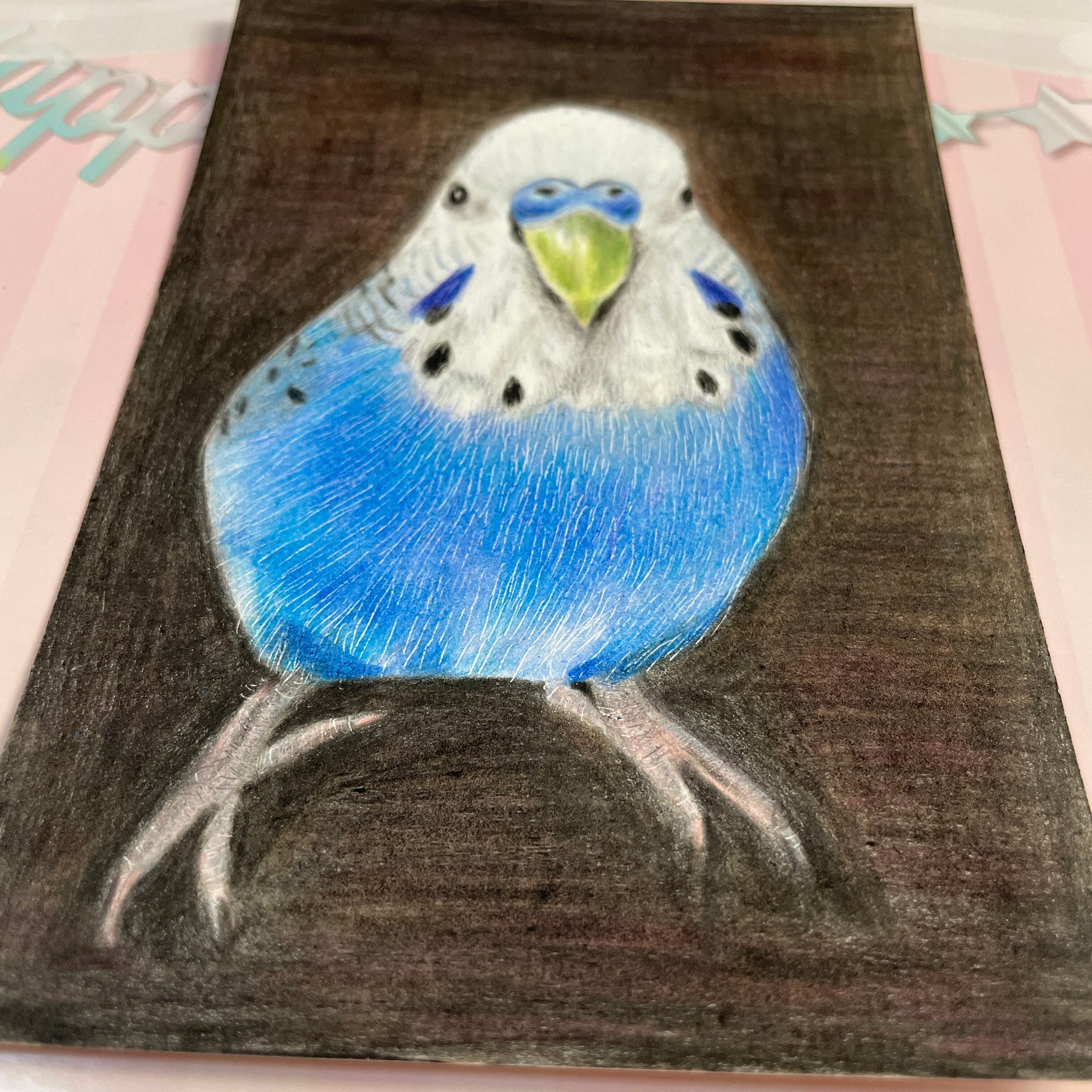 色鉛筆画 リアル可愛いセキセイインコ 色鉛筆画 原画 鳥 ハンドメイド ゆこりん工房